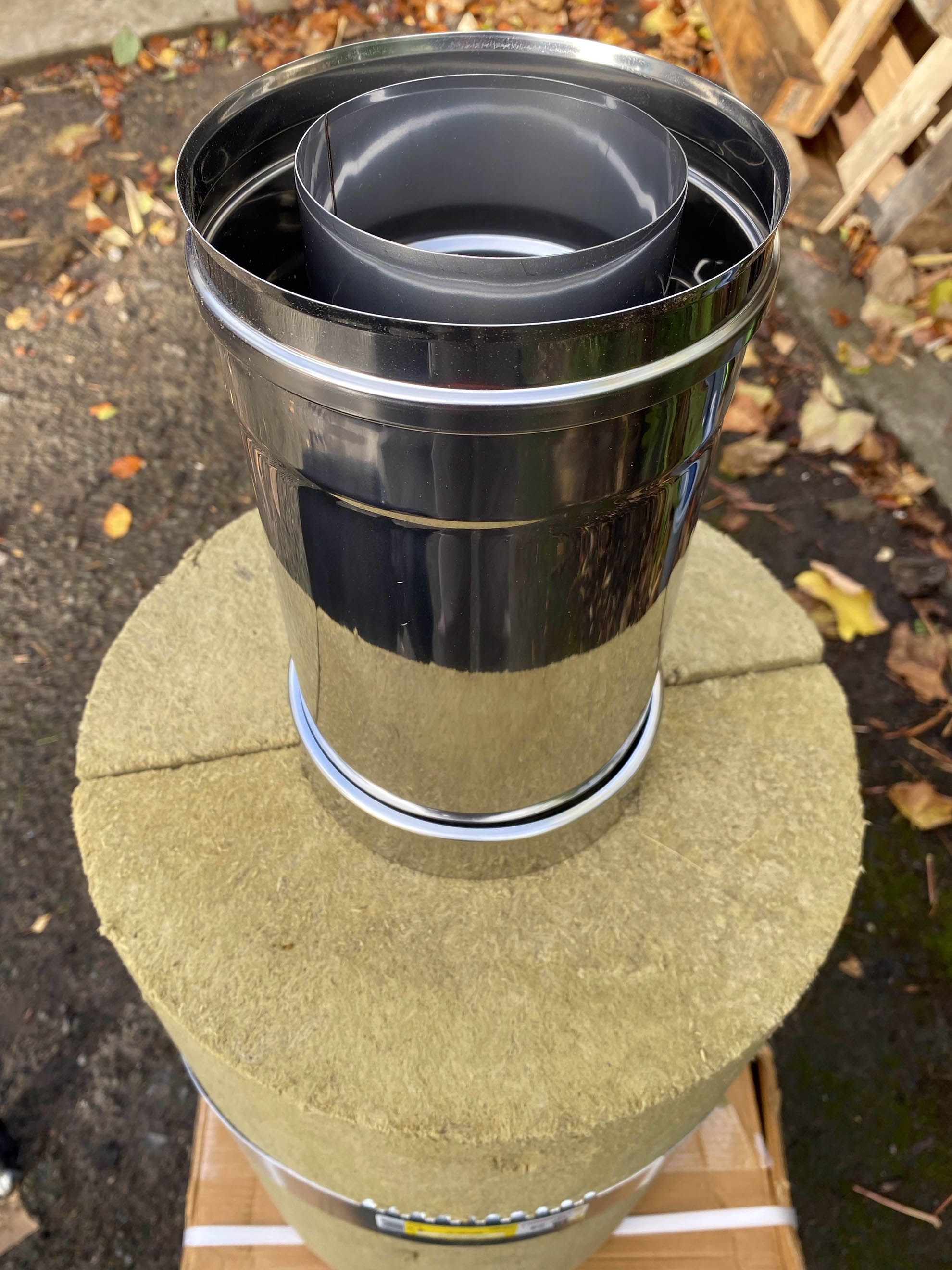 A triple wall chimney system , yes triple where the extra gap in the chimney system is used to duct air into the fire box (efficiency) range.